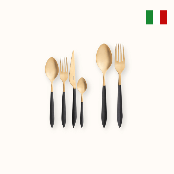 24 pieces Ares model, black handle in wood case wengé finished. Ares Gold is a colored cutlery set with enduring charm that brings refinement and style to your table. Trust Badge | Best home decor in Dubai, UAE