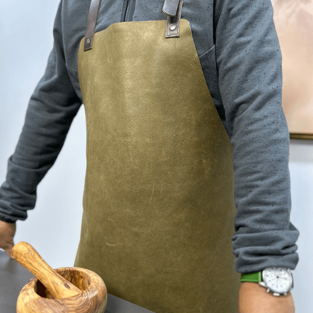 Leather Apron – Soft (made in Portugal) Olive – Aprons ( Yako and Co Leather Soft ) | Home Accessories